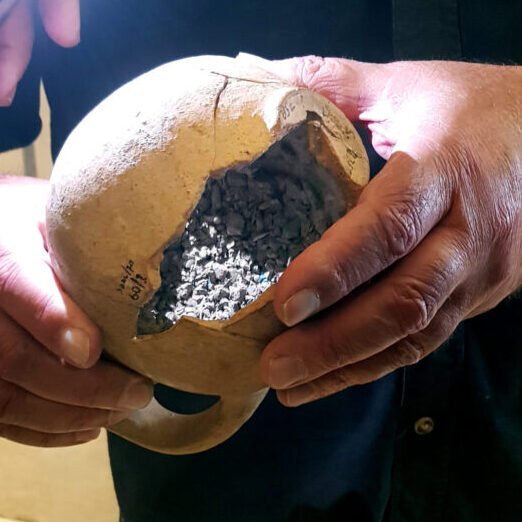 The jar you see in front of you was unearthed in the ancient biblical city of Eshtamoa (Israel) and according to some researchers dates back to the time of King David (10th century BC). The greyish material you see inside is raw silver which was commonly used before coins were invented. The Bible tells us that after David defeated the Amalekites he sent some of the plunder to the elders of Judah, saying “Here is a gift for you from the plunder of the Lord’s enemies” (1Samuel 30:26). Amongst them were the elders of Eshtamoa – the same city in which this jar was discovered. Since the location and age of the jar corresponds to that of the biblical story, it’s possible that this could be the plunder mentioned in the Bible.  This simple jar therefore, might contain more than just raw silver, but a “hello” from King David 3000 years ago!