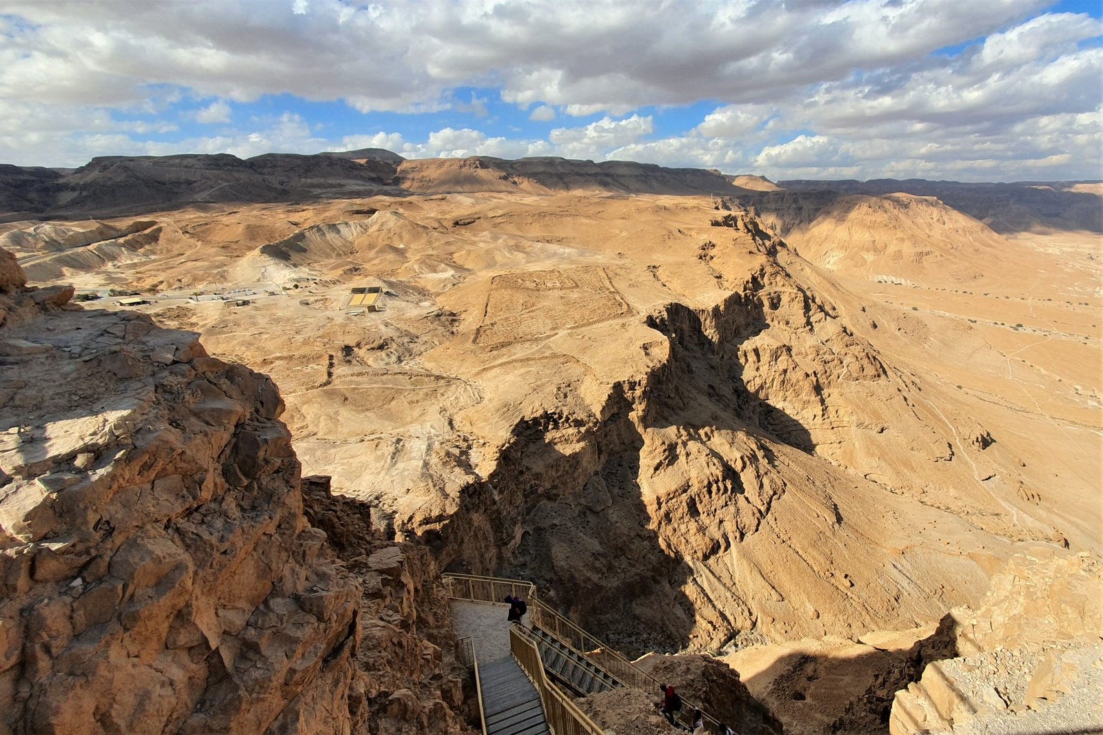 Great archaeology, dramatic setting, and a powerful story! Out in the middle of the mountainous Judean desert, hanging on the edge of a cliff over 1500′ (450 meters) above the valley floor overlooking the Dead Sea.