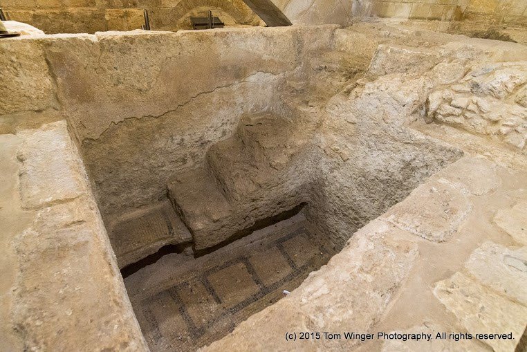 Now here’s some ARCHAEOLOGICAL evidence that suggests that Joseph (who we know so little about from the Bible) was indeed quite a successful builder:  That he made a good living, and provided a really nice home for his family.  Above is a photo of a bonafide “mikve” (Jewish ritual bath) taken by a friend of mine, Dr. Tom Winger (whose pastors tour I guided). It was discovered beneath the Church of St. Joseph in Nazareth which is built over the traditional home of Joseph and Mary, where Jesus grew up.
